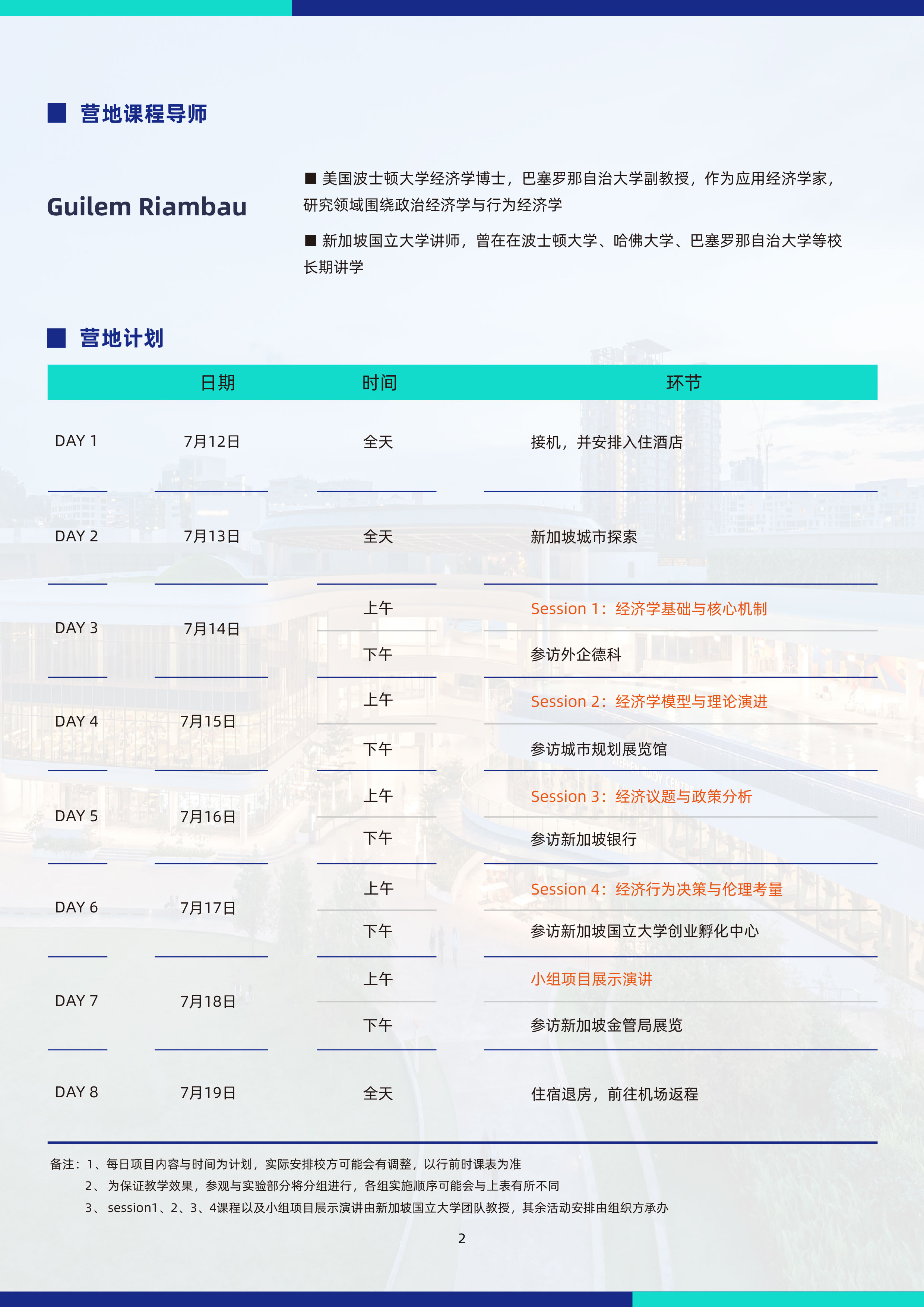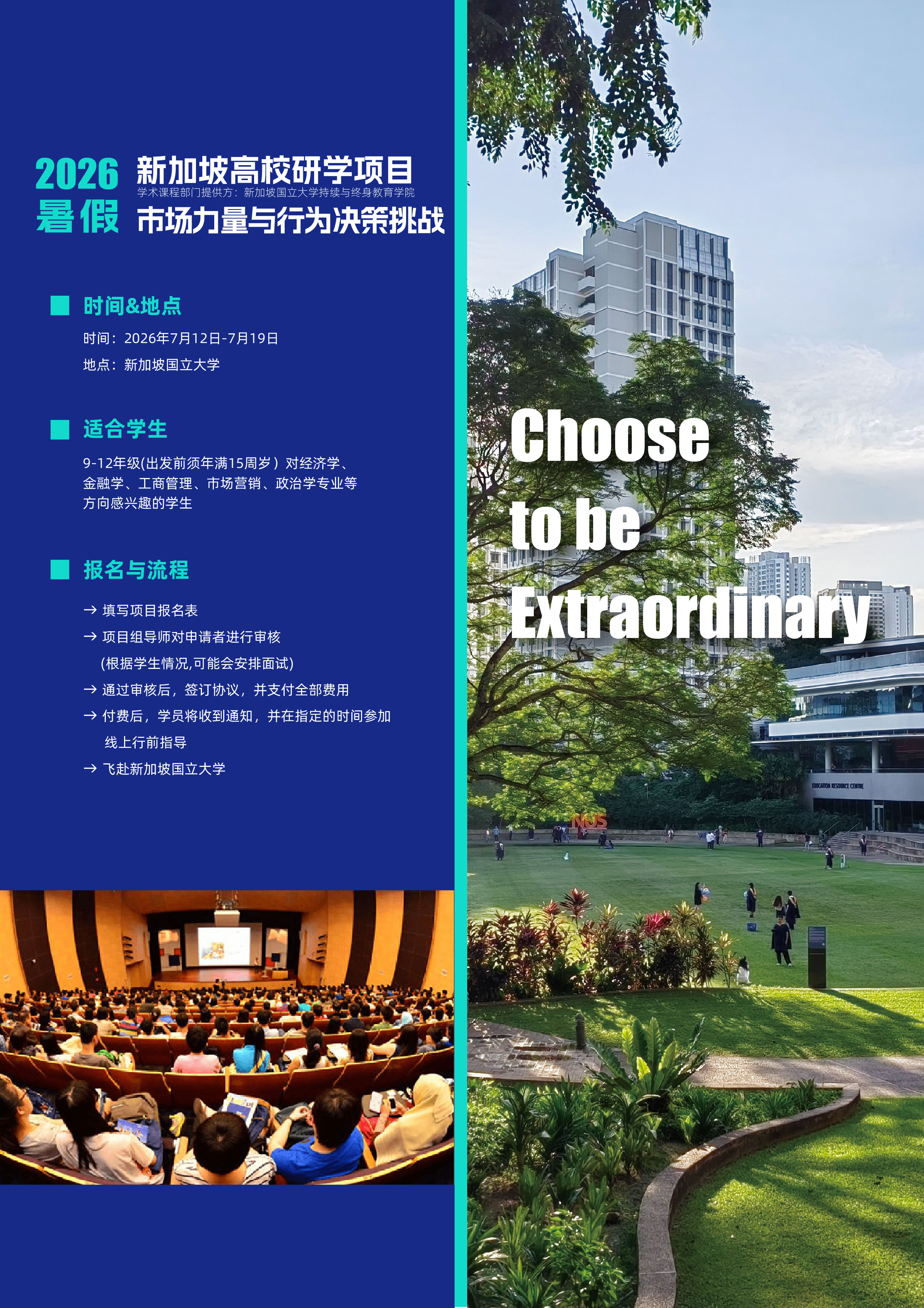 9-12年级(出发前须年满15周岁)对经济学、金融学、工商管理、市场营销、政治学专业等方向感兴趣的学生