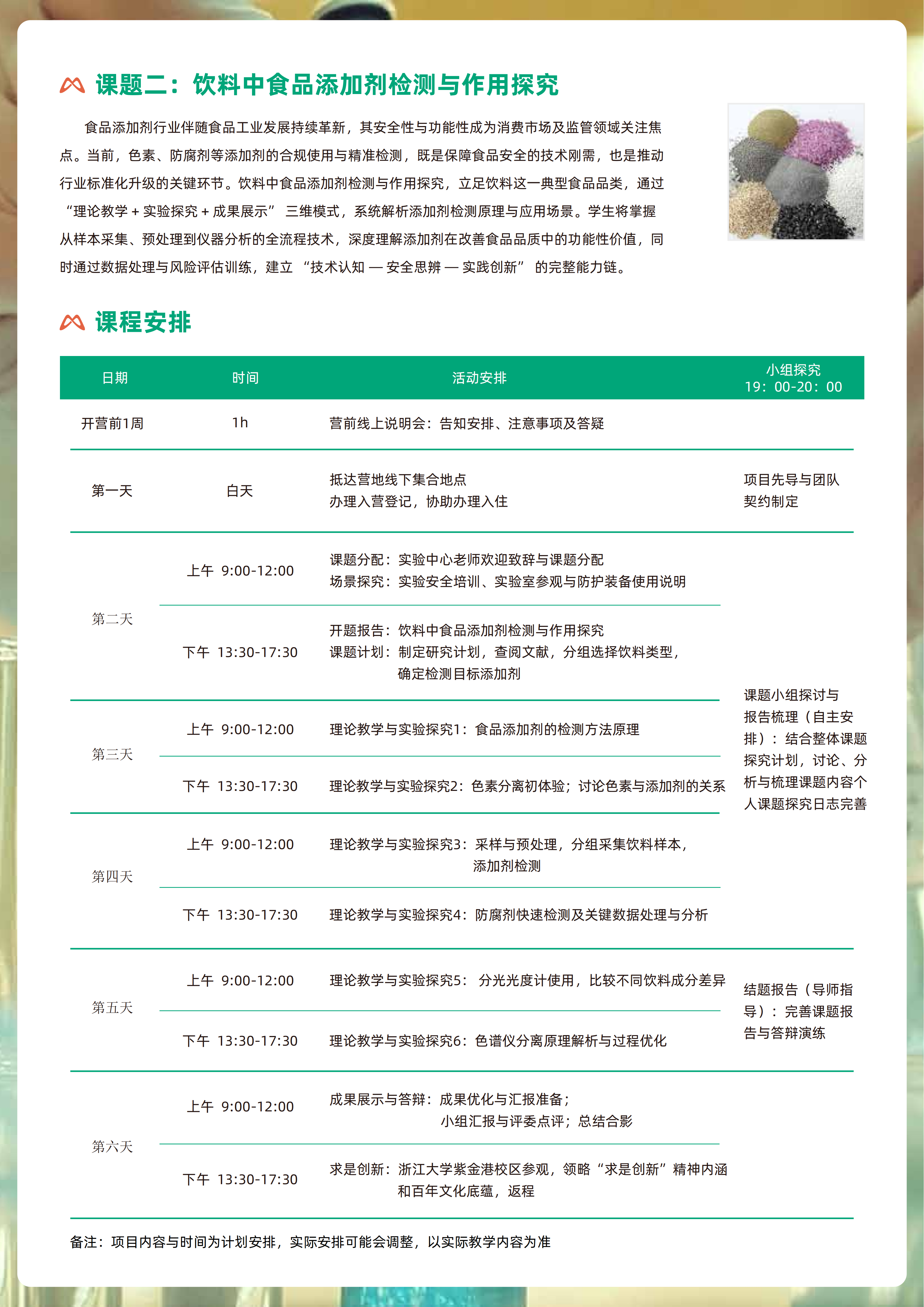 9-12年级,对基础化学、物质与材料科学、食品科学与安全等感兴趣的学生